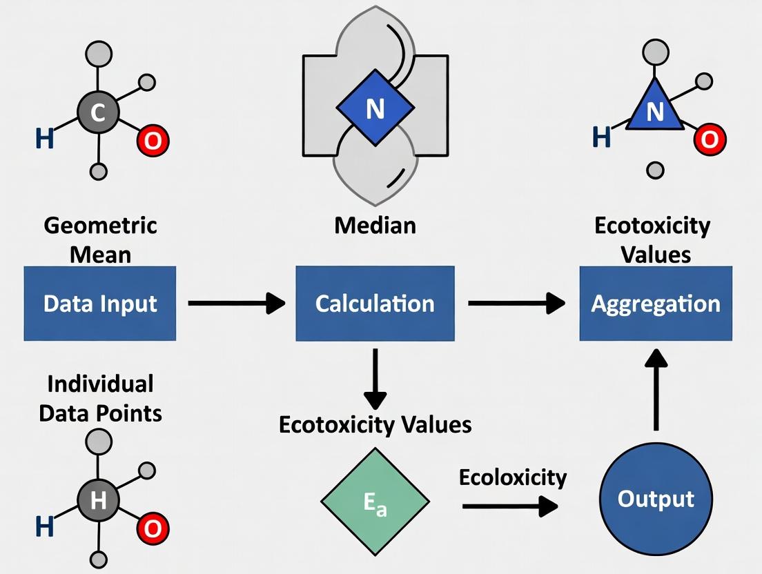 Ecotoxicology faces a fundamental challenge: a single chemical can yield a wide range of toxicity values (e.g., LC50, NOEC) for the same species, with intertest variability approximating a factor of 3 [1]. This variability stems from differences in experimental conditions, analytical methods, and organism life stages [2] [3]. For regulatory decisions, risk assessments, and life cycle impact analyses, researchers must aggregate multiple data points into a single, robust value [4] [5]. The choice of aggregation method—geometric mean or median—is not merely statistical but profoundly influences derived environmental quality standards, predicted no-effect concentrations (PNECs), and characterization factors in models like USEtox [4] [6].