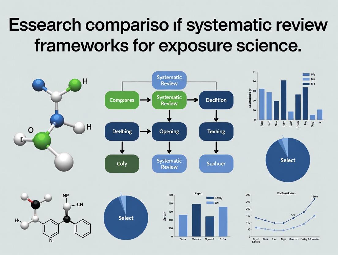This analysis, situated within a broader thesis on systematic review frameworks for exposure science, provides a comparative guide to these tools. It is tailored for researchers, scientists, and drug development professionals who must navigate the complexities of synthesizing evidence on environmental exposures, therapeutic risks, disease origins, and stakeholder perspectives. The guide objectively compares framework performance using empirical data, details experimental protocols, and provides structured resources for implementation.